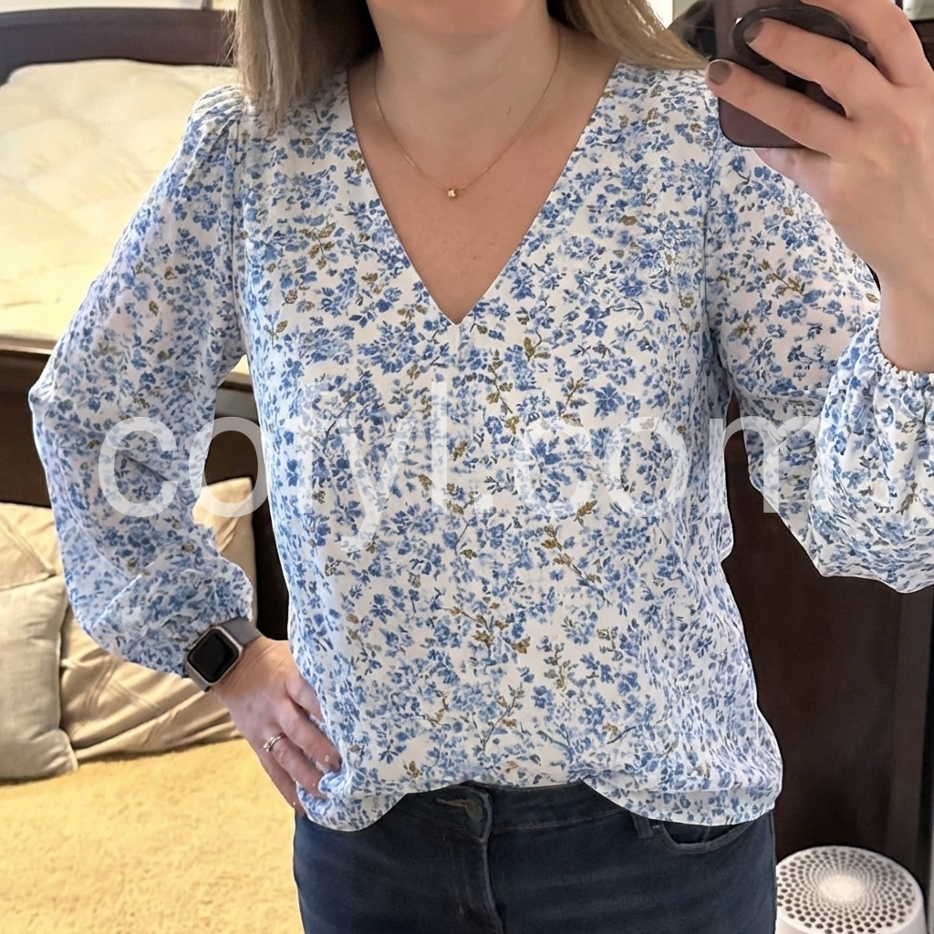 This blouse is absolutely gorgeous! The blue floral print is so delicate and perfect for spring. I wore it out to brunch and got so many compliments. Fits true to size.