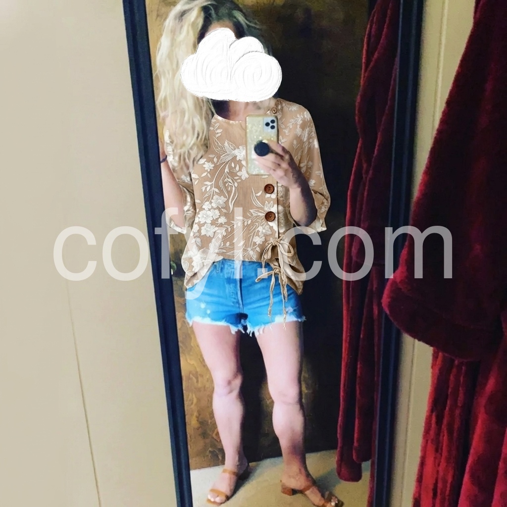 I love clothes with unique details and this top delivers. The asymmetrical cut with the buttons and the bottom ties make it stand out from a basic tee. It is very comfortable and fits my curves nicely.